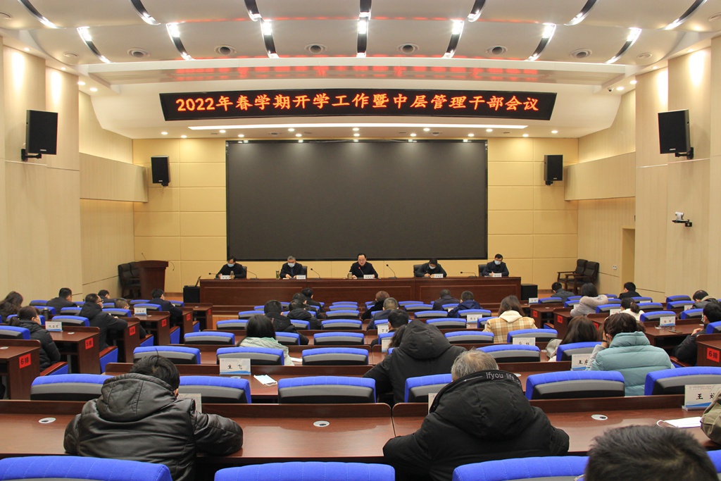 2月11日上午,我校在知行厅召开2022年春学期开学工作暨中层管理干部会议,动员全校上下坚持奋斗实干、勇毅前行,继续为推进学校高质量发展而辛勤奋斗。校领导班子全体成员及所有中层管理干部参加会议。