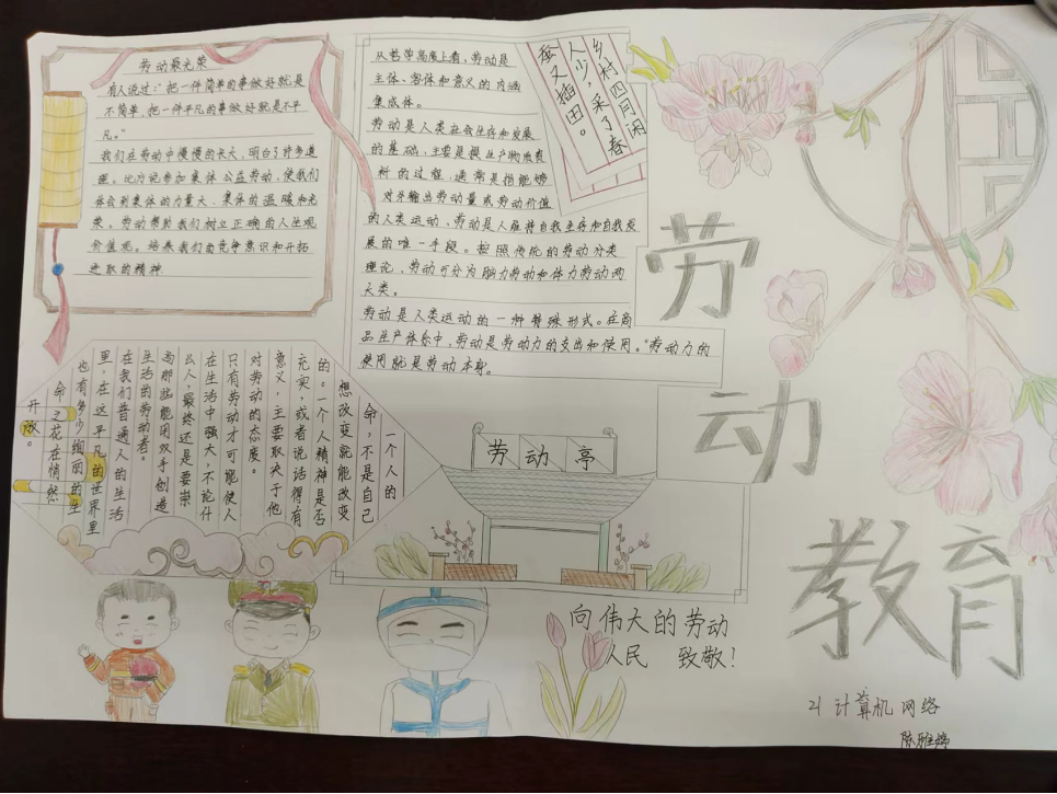 为增强学生劳动奉献意识,养成务实、勤俭的优良品格,陶冶学生审美情操,进一步树立劳动最光荣、劳动最美丽的健康正确劳动观。我系举行以劳动教育为主题的手抄报评比活动,现将评比结果通知如下: